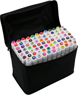 Mit dem Touchfive Marker 60er-Set bekommst du ein günstiges Einsteigerset. Entgegen dem „Touch“ im Namen des Sets sind diese Stifte jedoch nicht mit den qualitativ hochwertigeren und damit auch teureren Touch Twin zu verwechseln, auch wenn die Touchfive Marker ebenso wie die Touch Twin doppelseitig sind. Die Touchfive sind aber keine echten Brush Marker: Sie haben Standard-Filzspitzen statt pinselähnliche Spitzen. Somit gestaltet sich das Ineinander-Verlaufenlassen von Farben nicht ganz so einfach wie mit echten Brush Markern. Doch die Touchfive basieren wie die echten Touch Twin oder auch die Copic Ciao auf Alkohol, sind also mit diesen kompatibel.